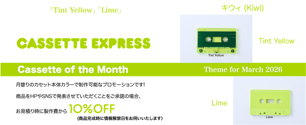 CASSETTE EXPRESSでは、月替わりでカセット本体色をセレクトしたプロモーション「Cassette of The Month」をご提案しております。