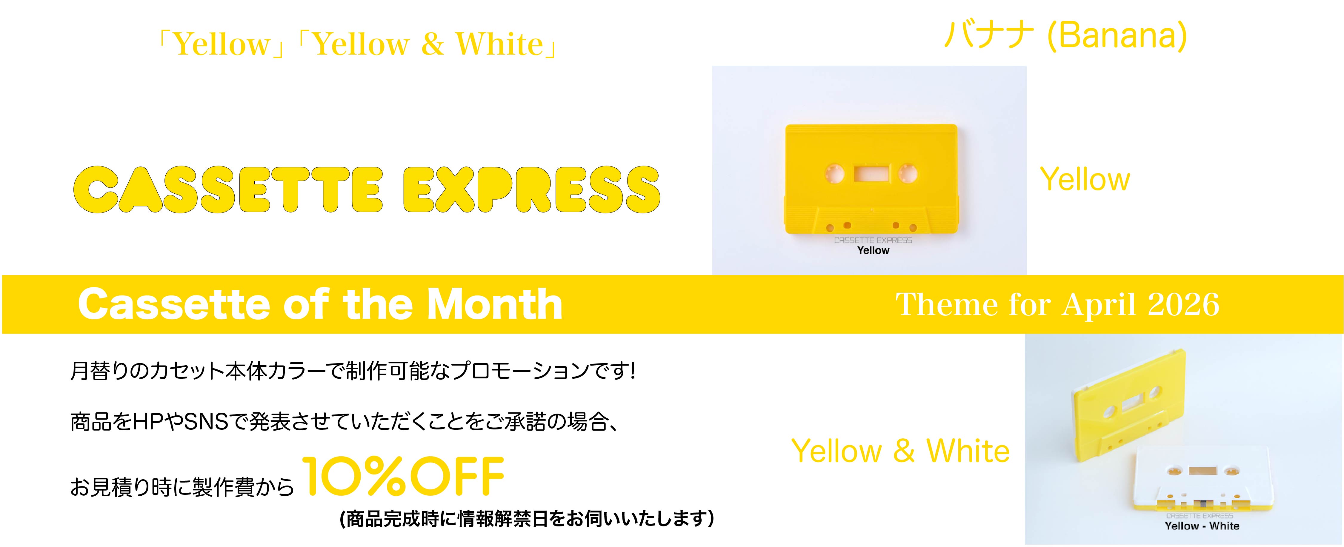 4月はバナナの類似色「Yellow」・「Yellow & White」。カセットは本体のカラーを変えるだけでその作品イメージが大きく変わります!