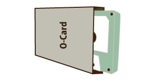 「表面」・「表背表紙」・「裏面」・「裏背表紙」の4面から構成されるカードを、横から見るとアルファベットの「O」の形のようにスリーブ状に貼り付けることから「O-CARD」と呼ばれています。
