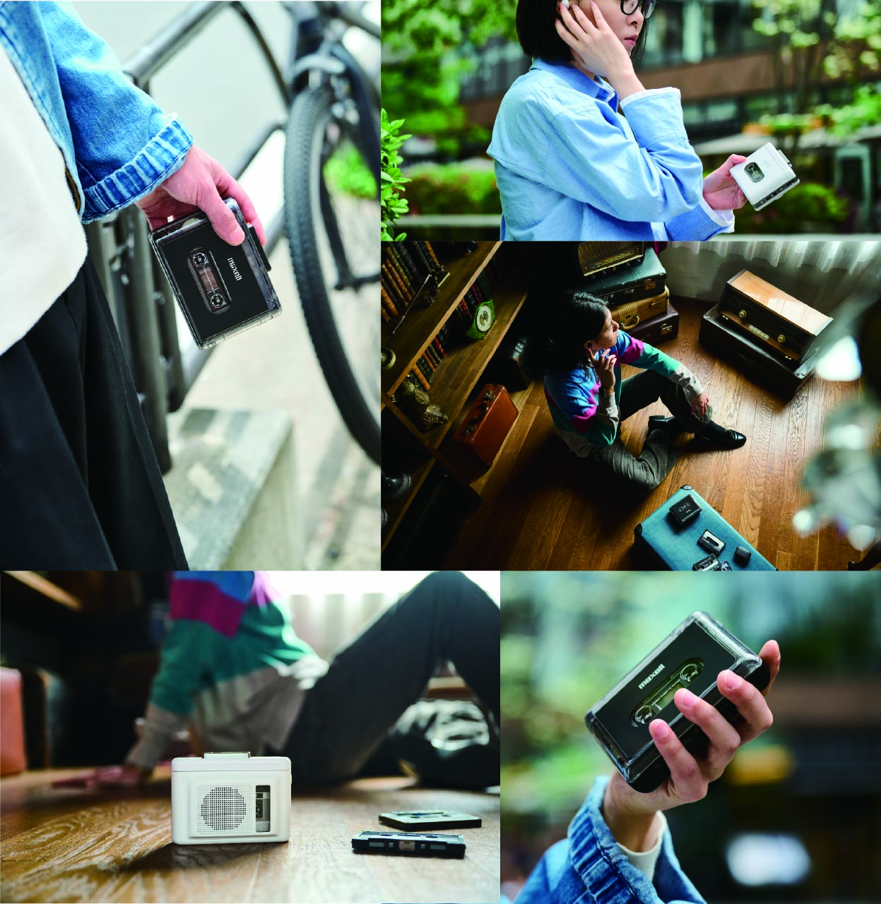 カセットテープの再生に加えて、内蔵マイクにて音声をカセットテープに録音できるカセットプレーヤーです。1980年代のプレーヤーを彷彿させるパッドが付いたヘアバンド式ヘッドフォンが標準装備!