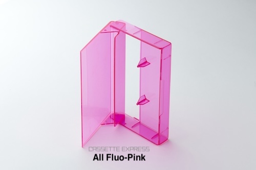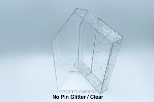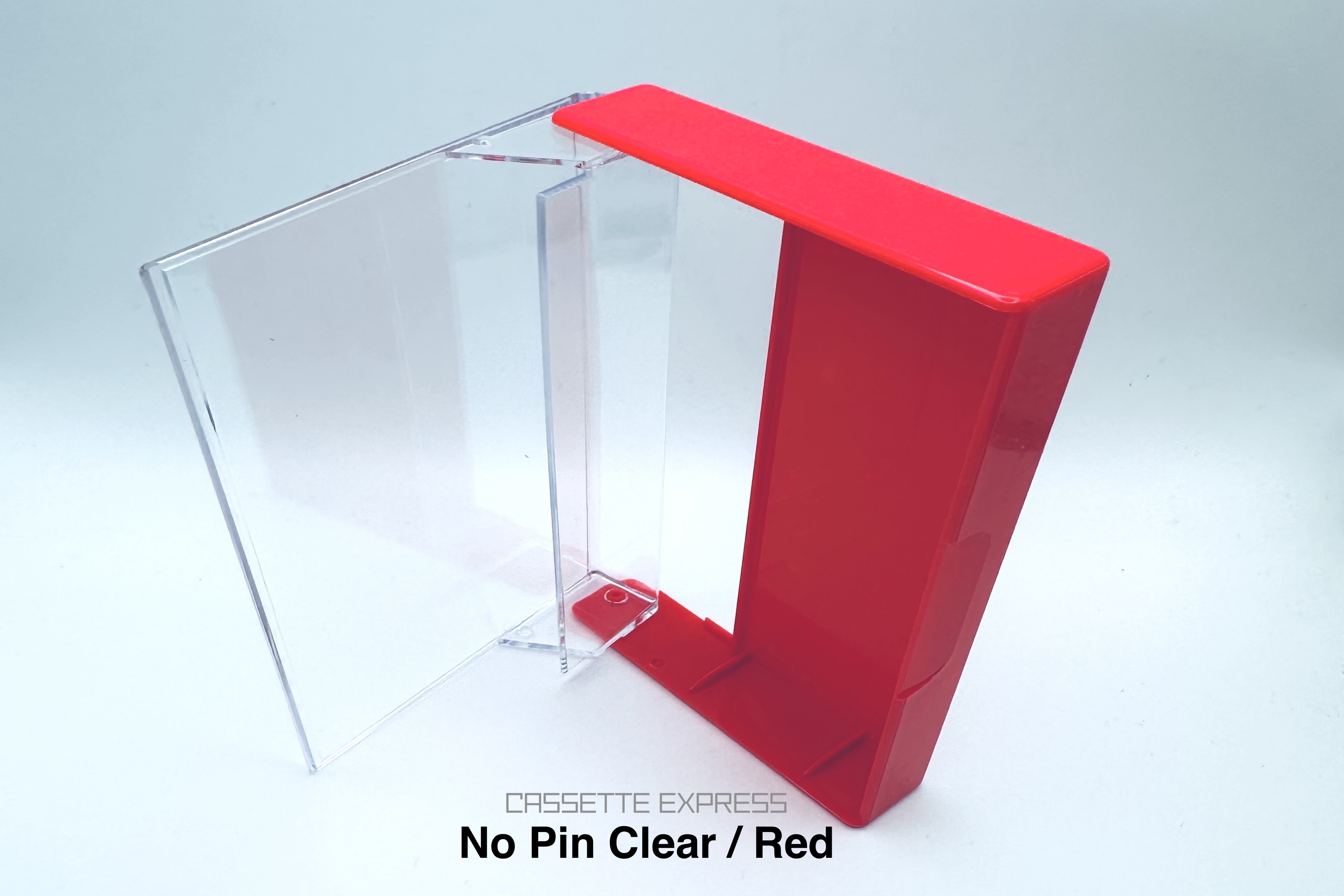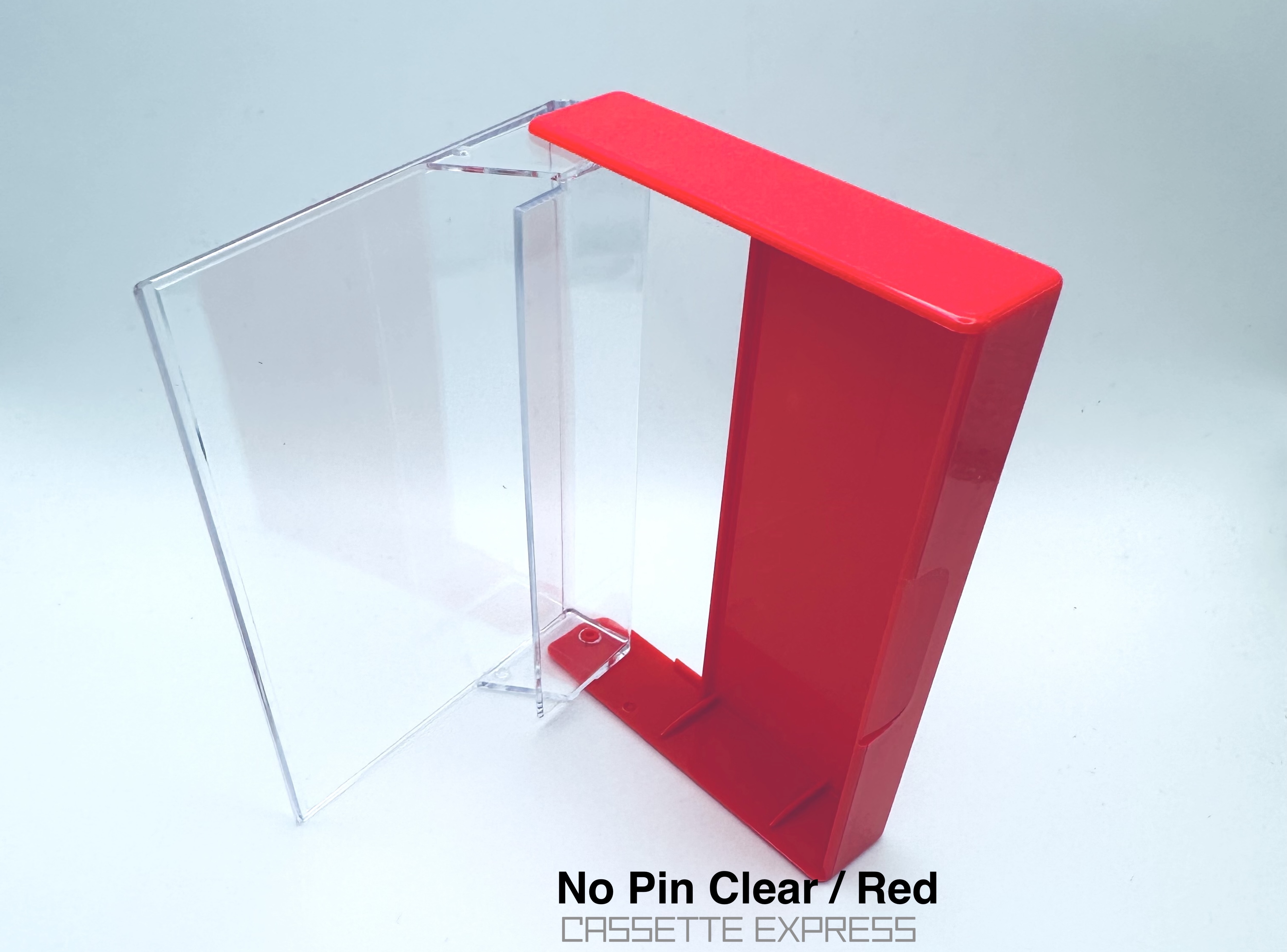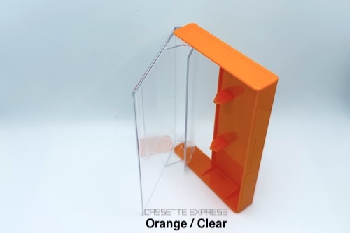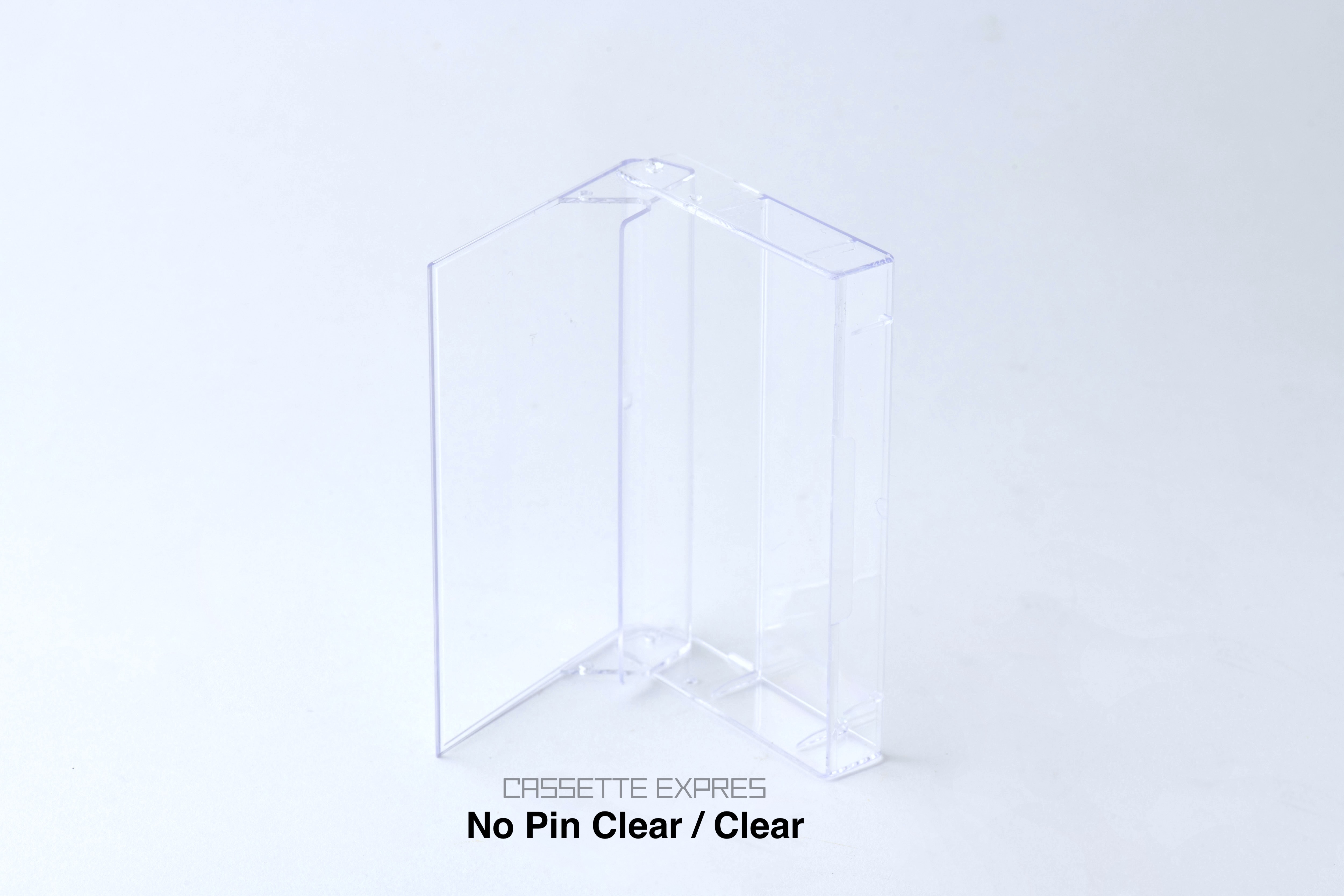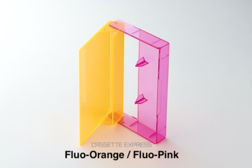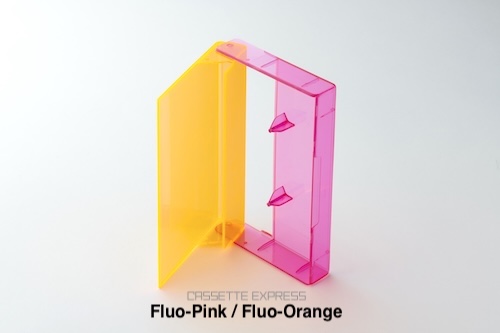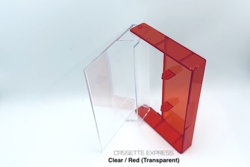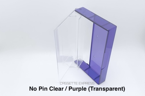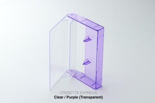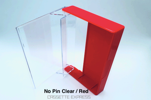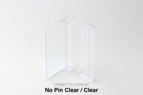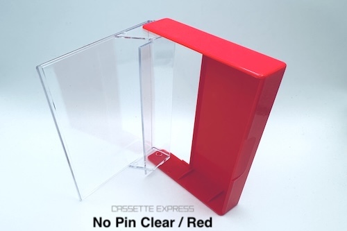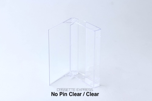 For cassette plastic cases, in addition to the standard clear/clear front and back panels, we offer various colored plastic cases at an optional price. Options include solid opaque colors with a clear back, translucent clear colors, fluorescent colors that glow under black light, a pinless (No Pin) specification usable for items other than cassettes, and 2-pack or 3-pack configurations.
