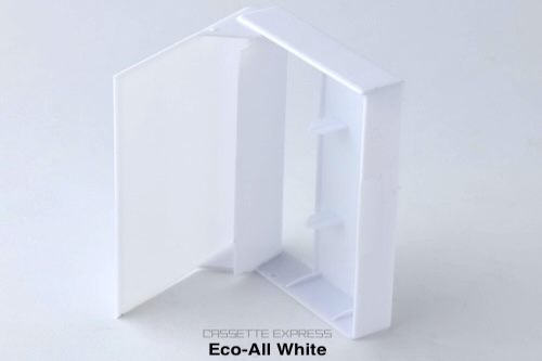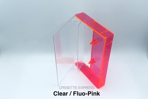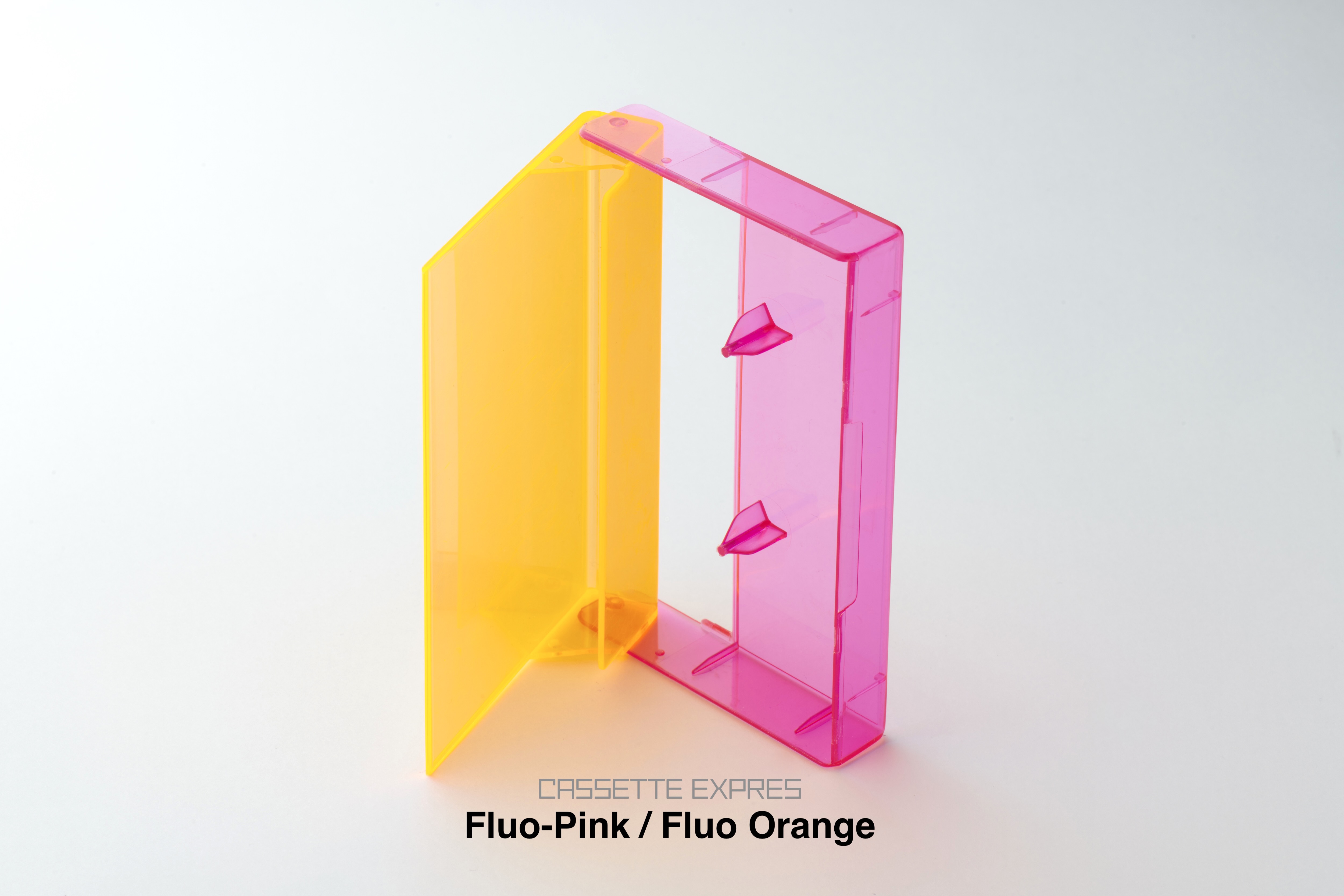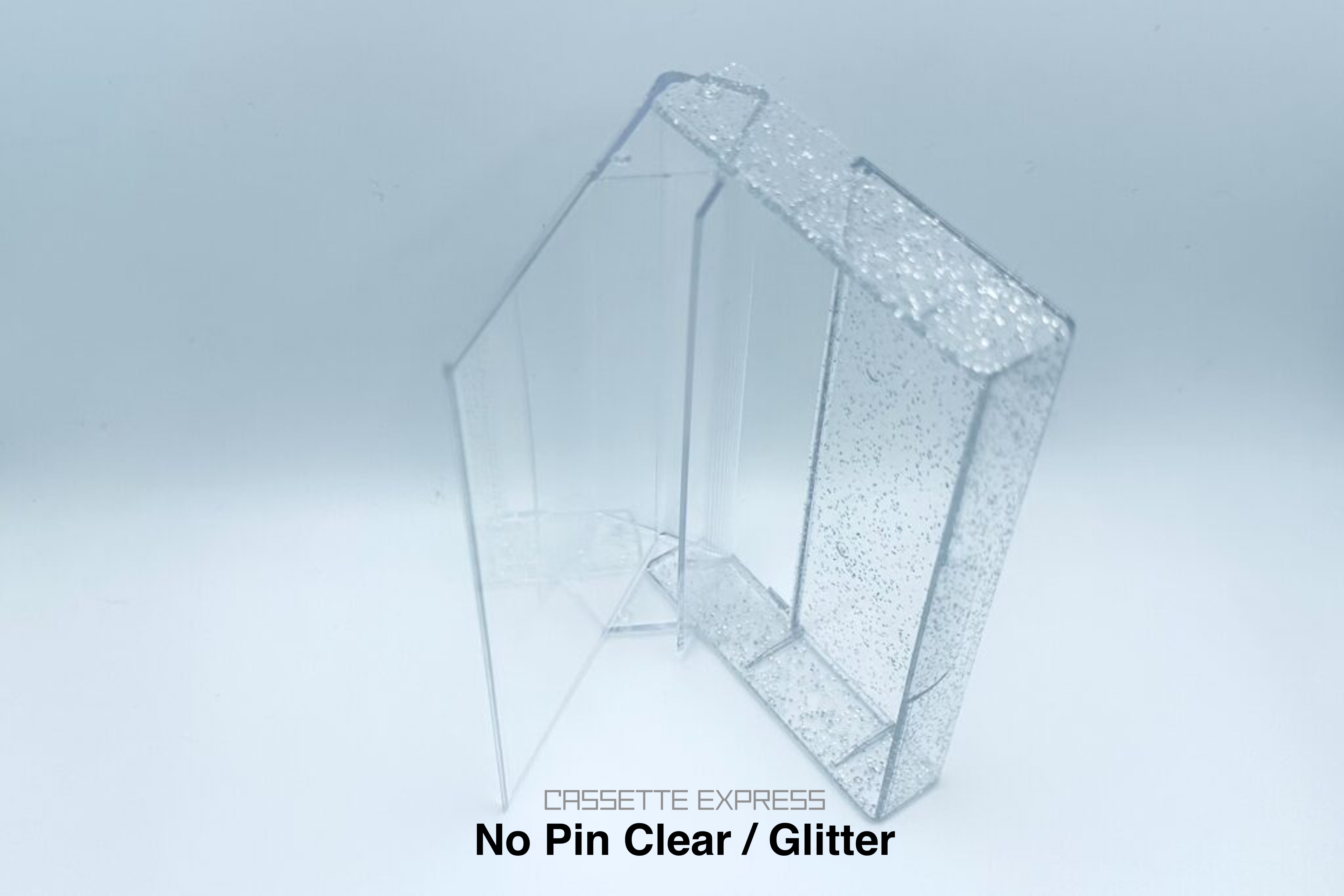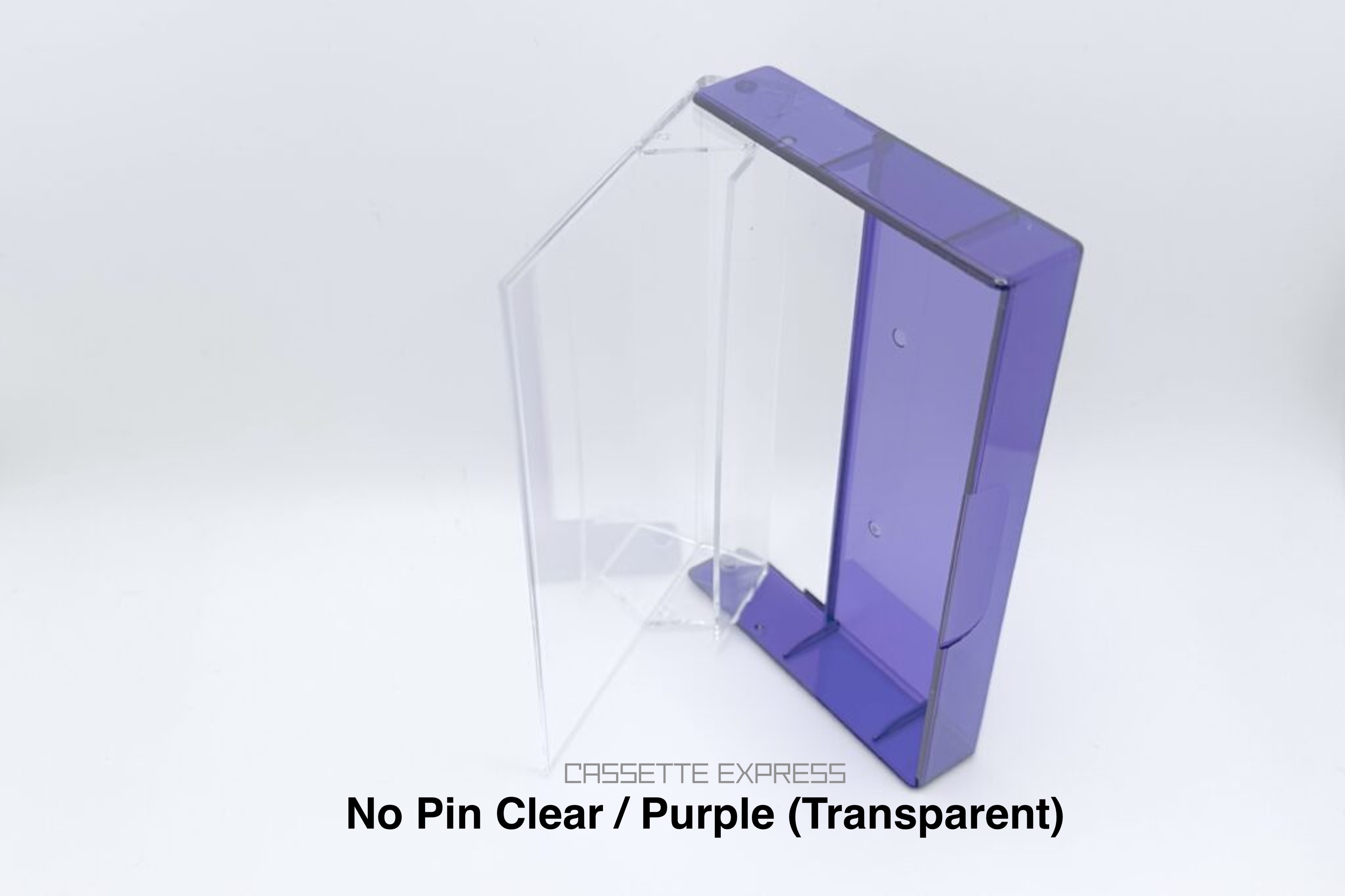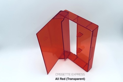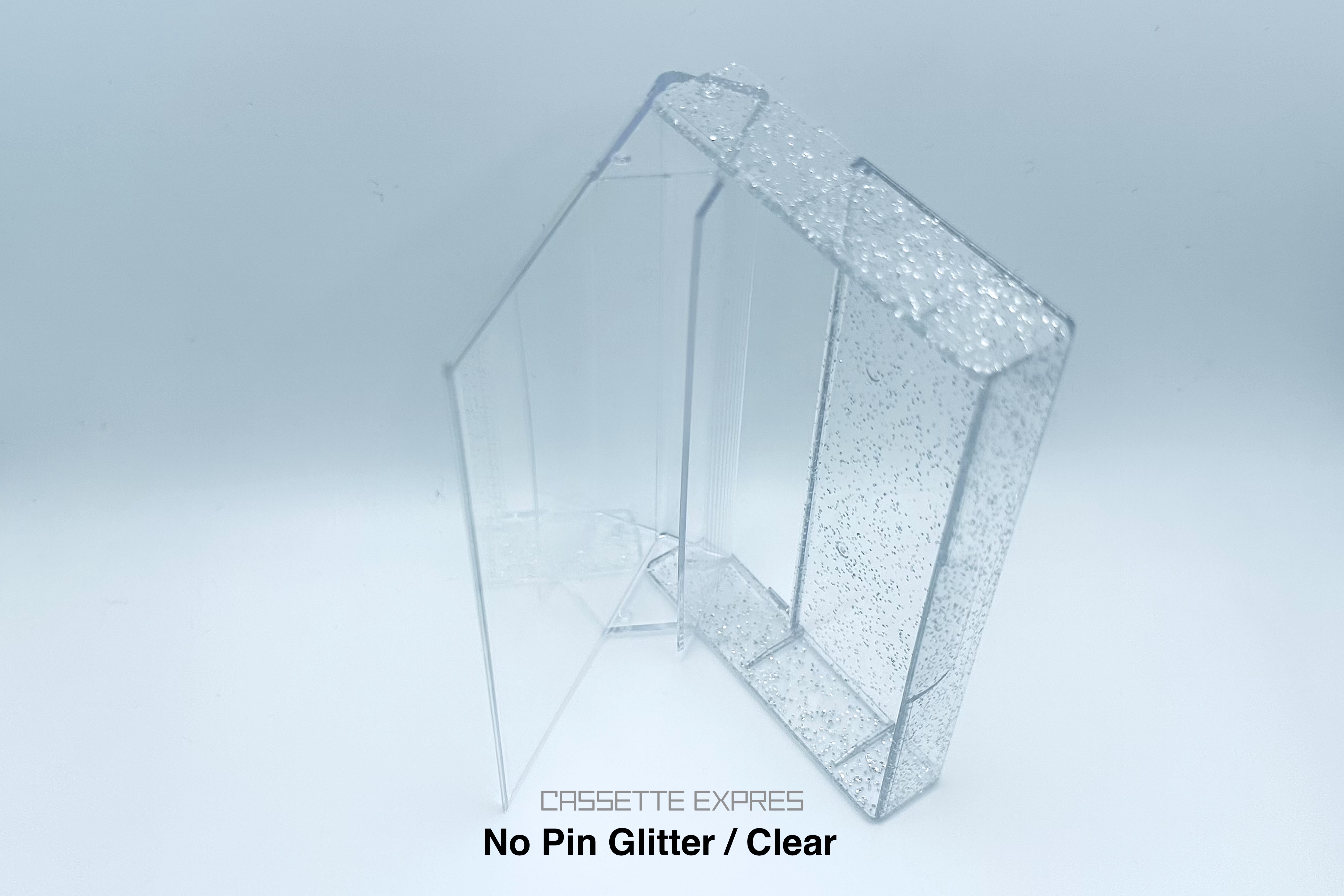For cassette plastic cases, in addition to the standard clear/clear front and back panels, we offer various colored plastic cases at an optional price. Options include solid opaque colors with a clear back, translucent clear colors, fluorescent colors that glow under black light, a pinless (No Pin) specification usable for items other than cassettes, and 2-pack or 3-pack configurations.