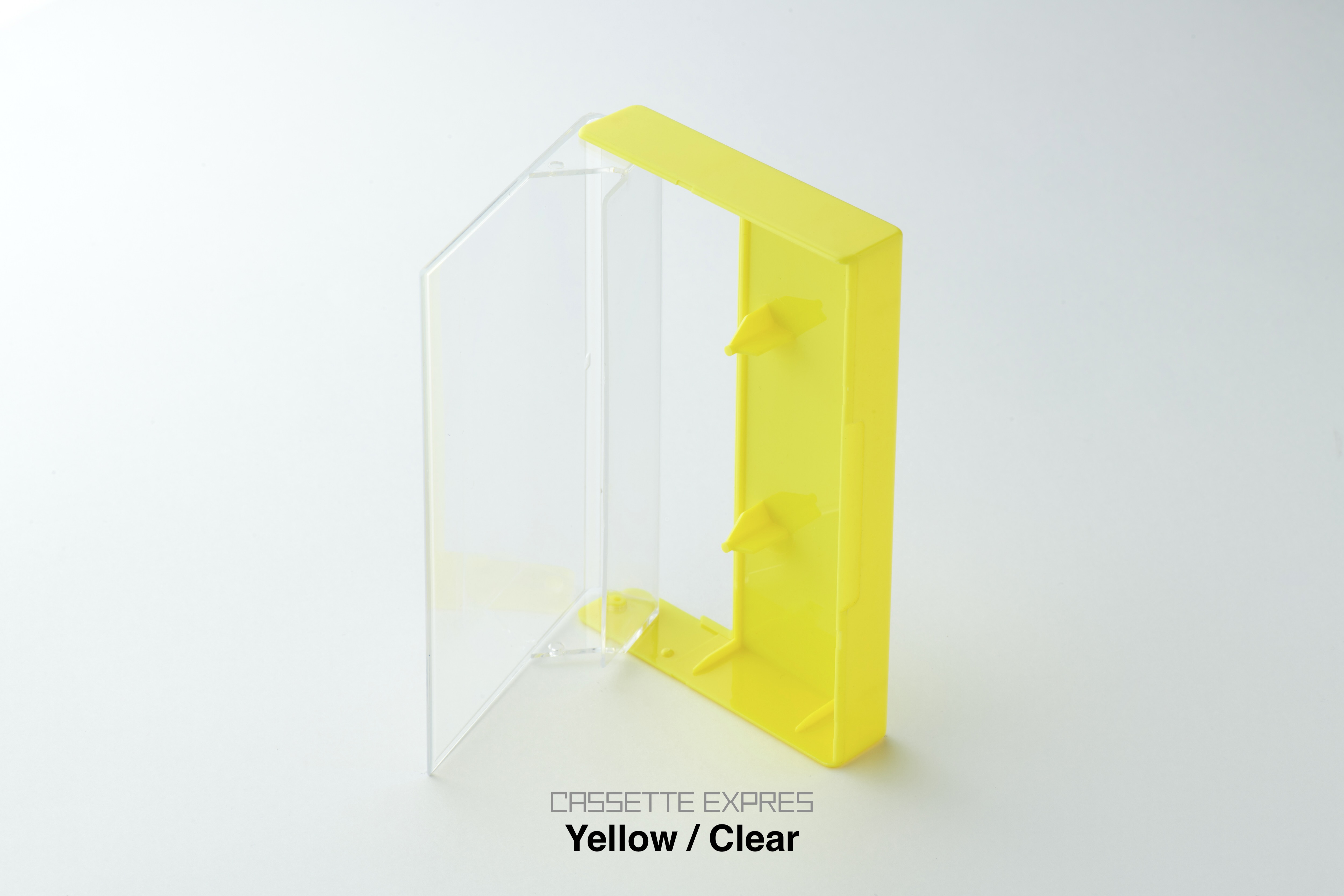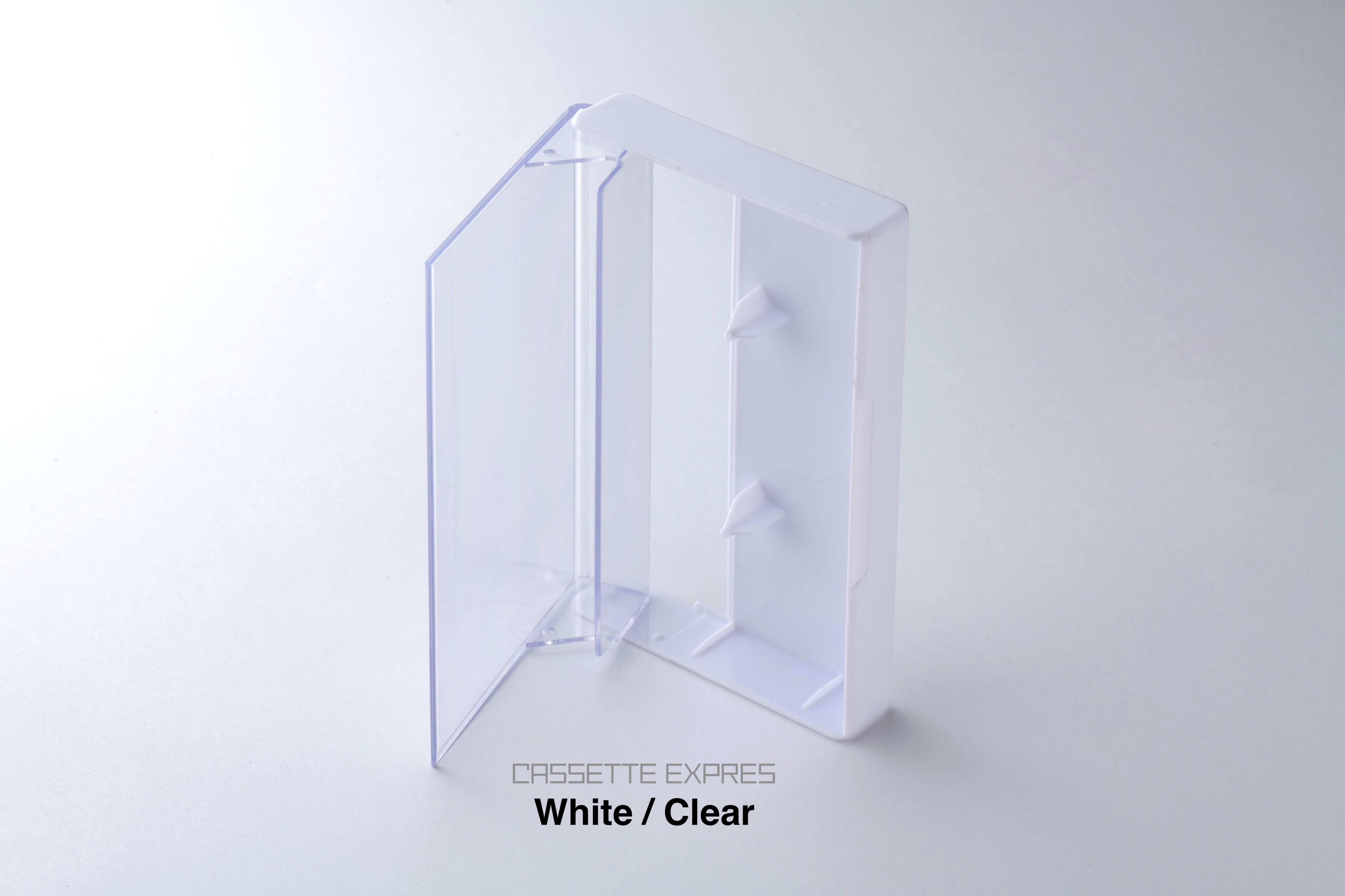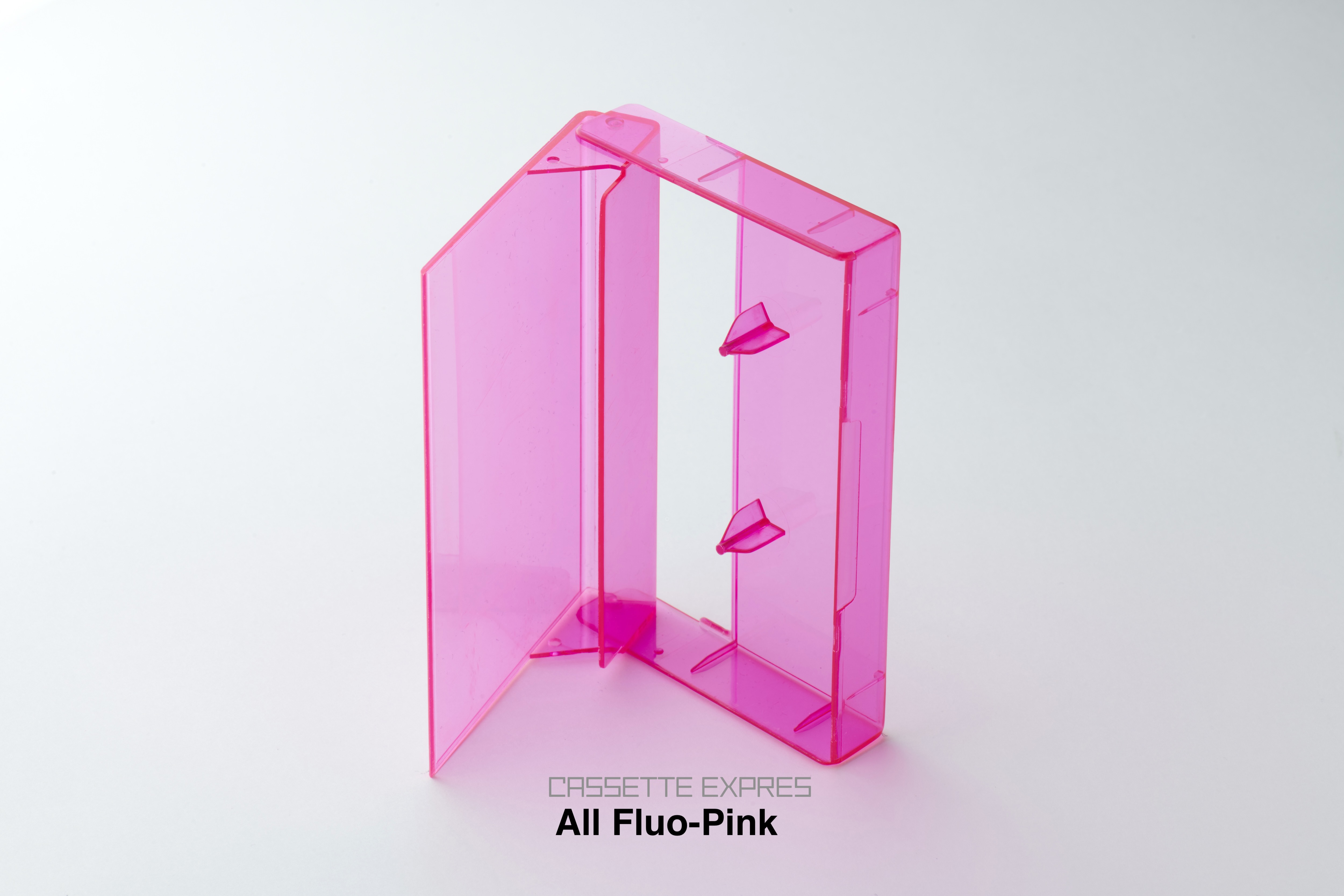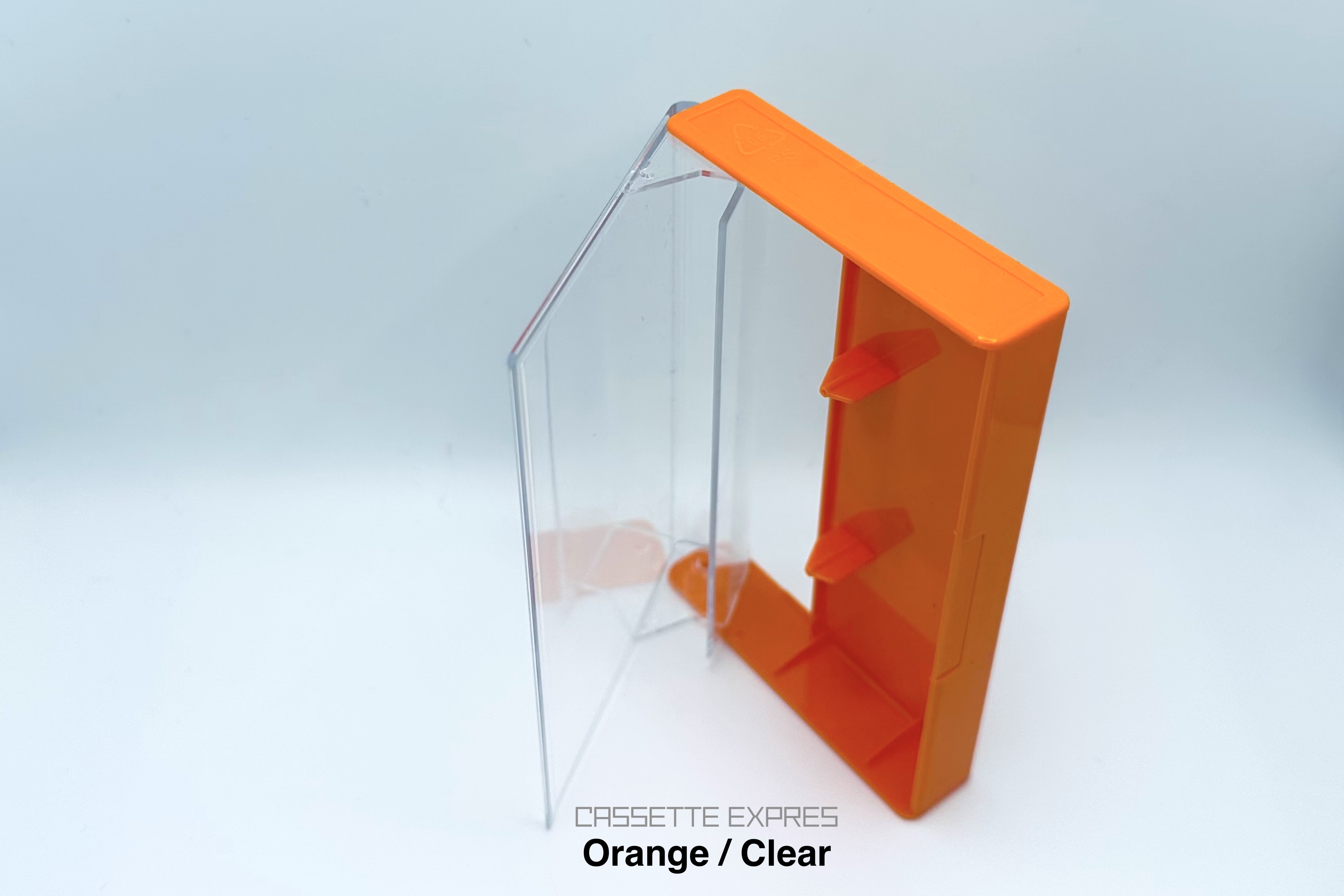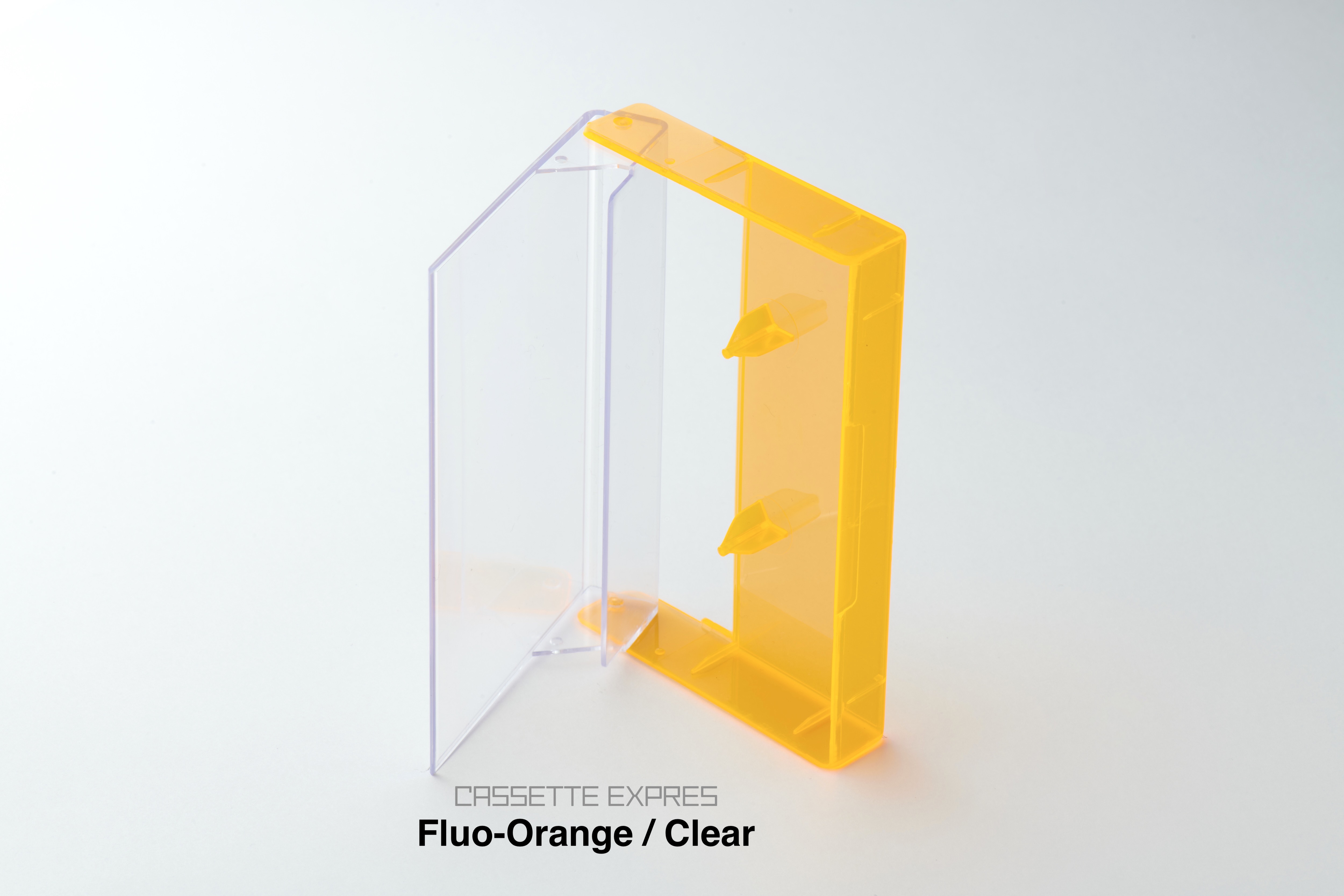 フロントはクリアでバックが不透明色なソリッド系色や透け感のあるクリア系色、ブラックライトで浮き上がる蛍光カラー、カセット以外にも使える内部突起無(No Pin)仕様、2本組・3本組仕様などもございます。個別ケースは画像クリックで拡大イメージをご覧いただけます。