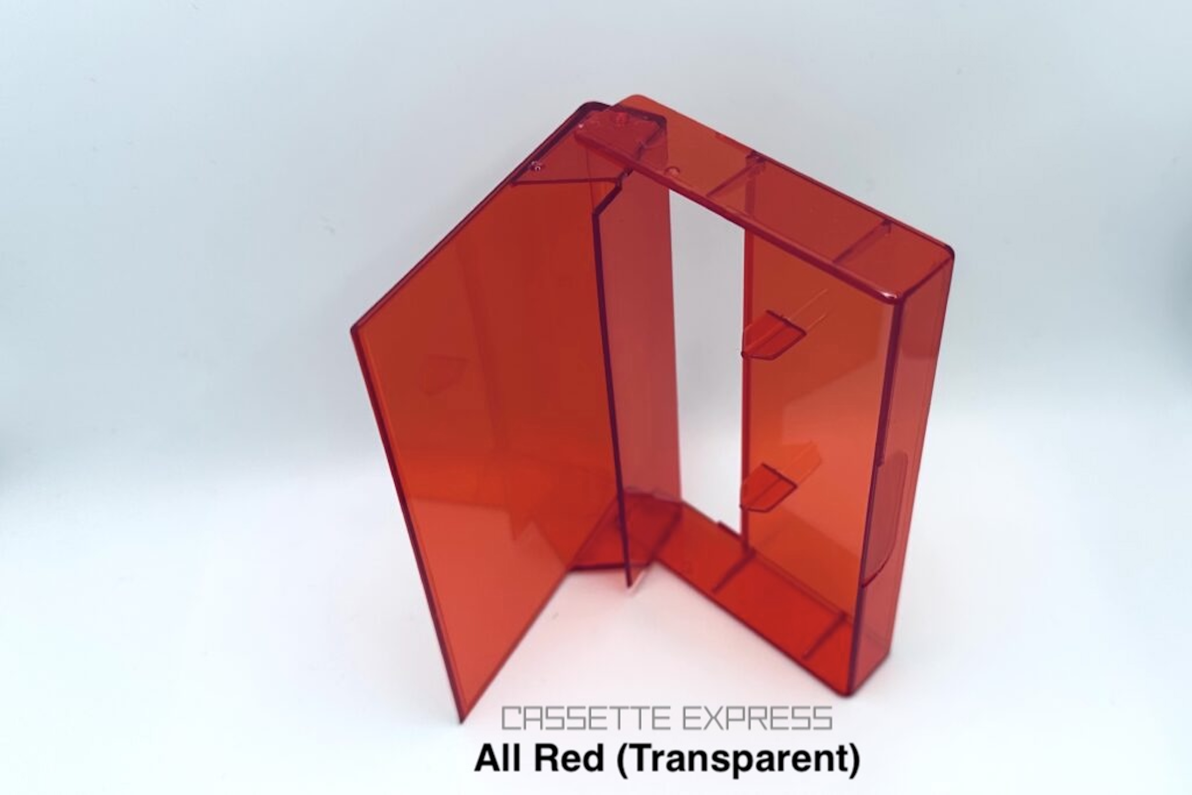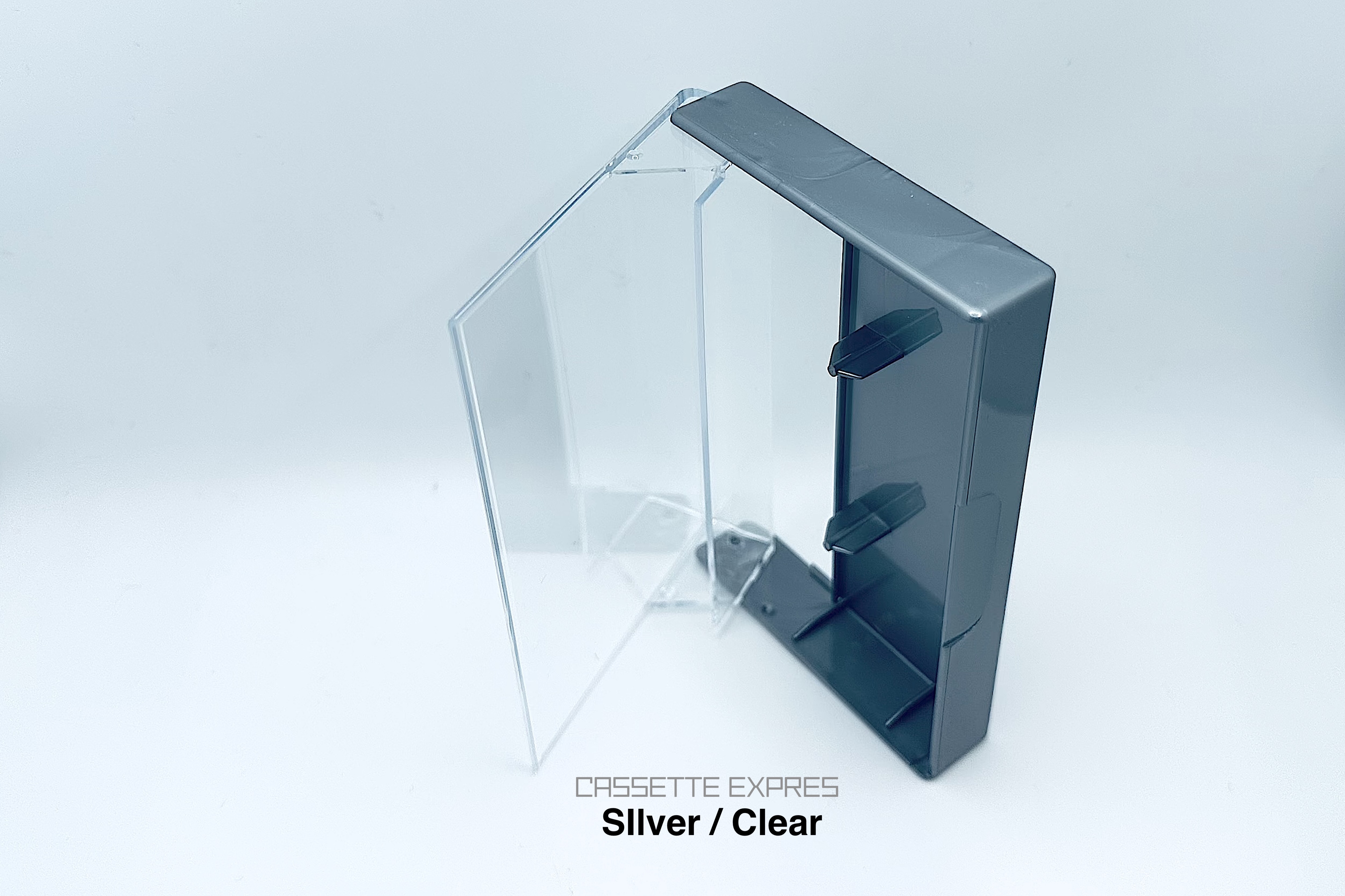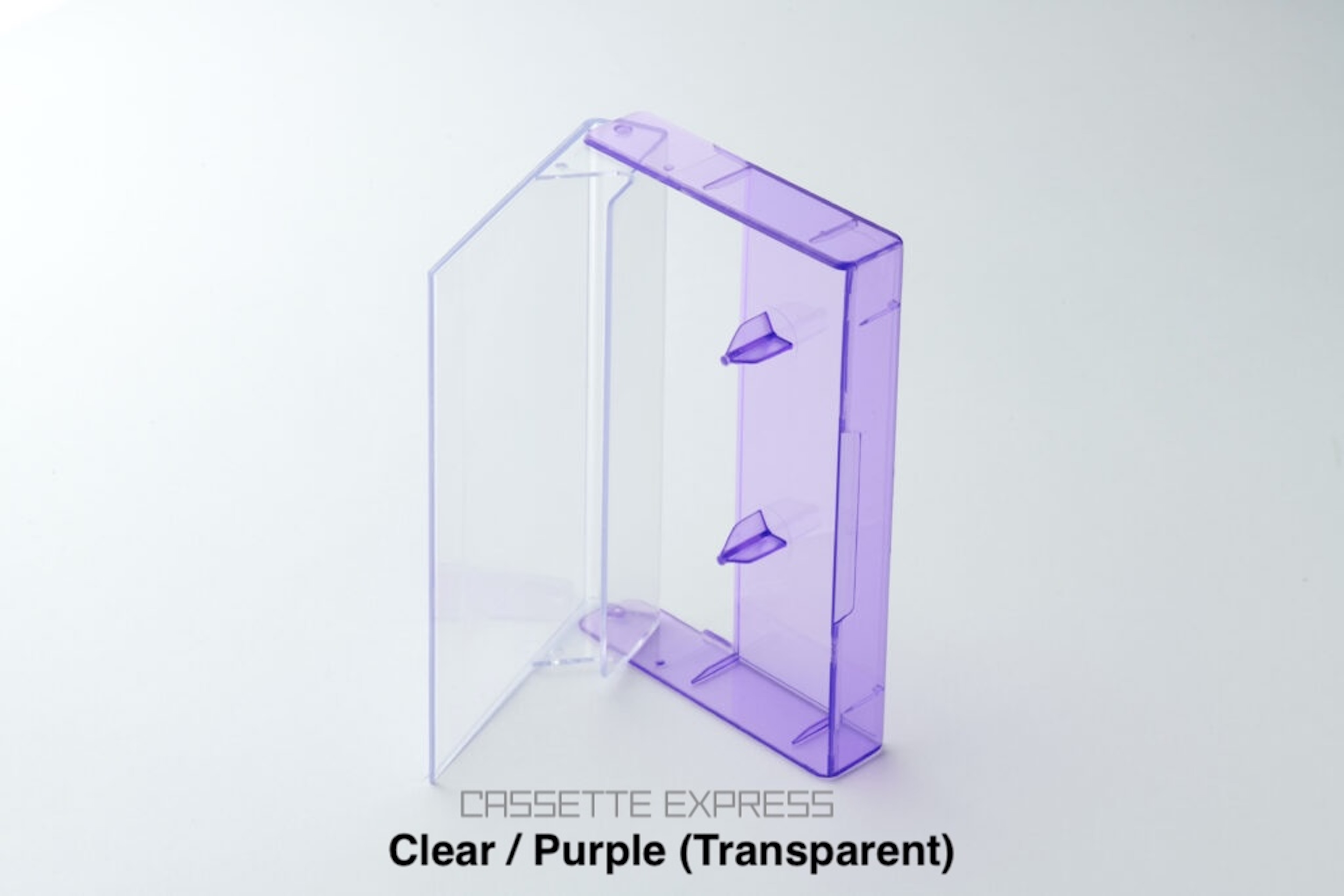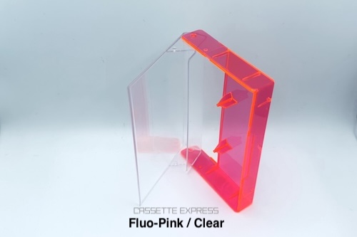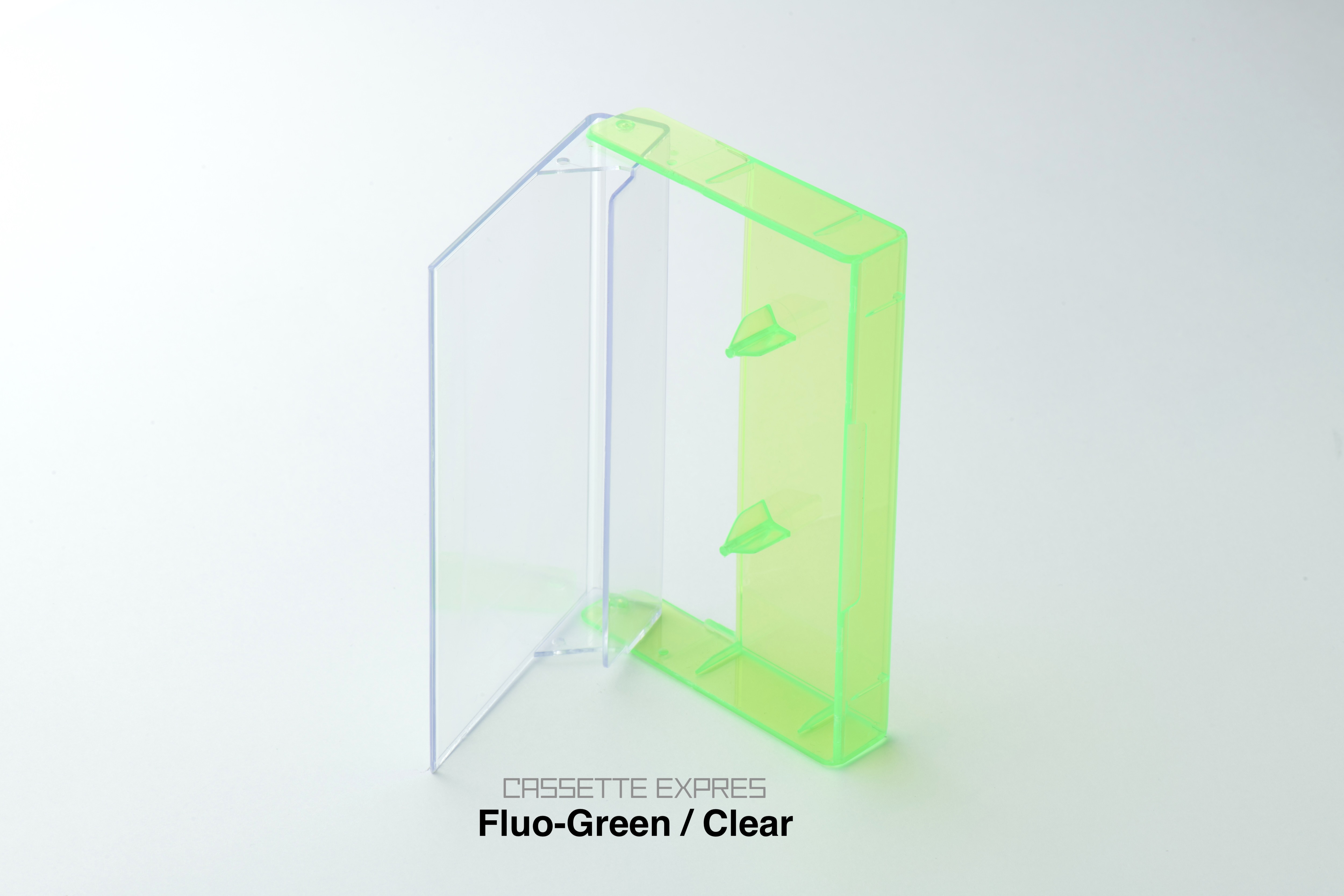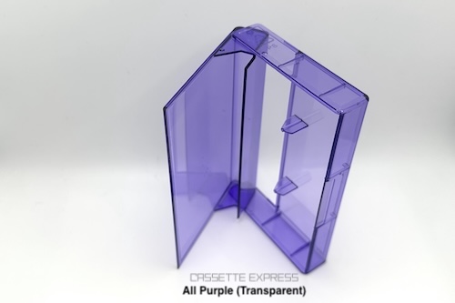 フロントはクリアでバックが不透明色なソリッド系色や透け感のあるクリア系色、ブラックライトで浮き上がる蛍光カラー、カセット以外にも使える内部突起無(No Pin)仕様、2本組・3本組仕様などもございます。個別ケースは画像クリックで拡大イメージをご覧いただけます。