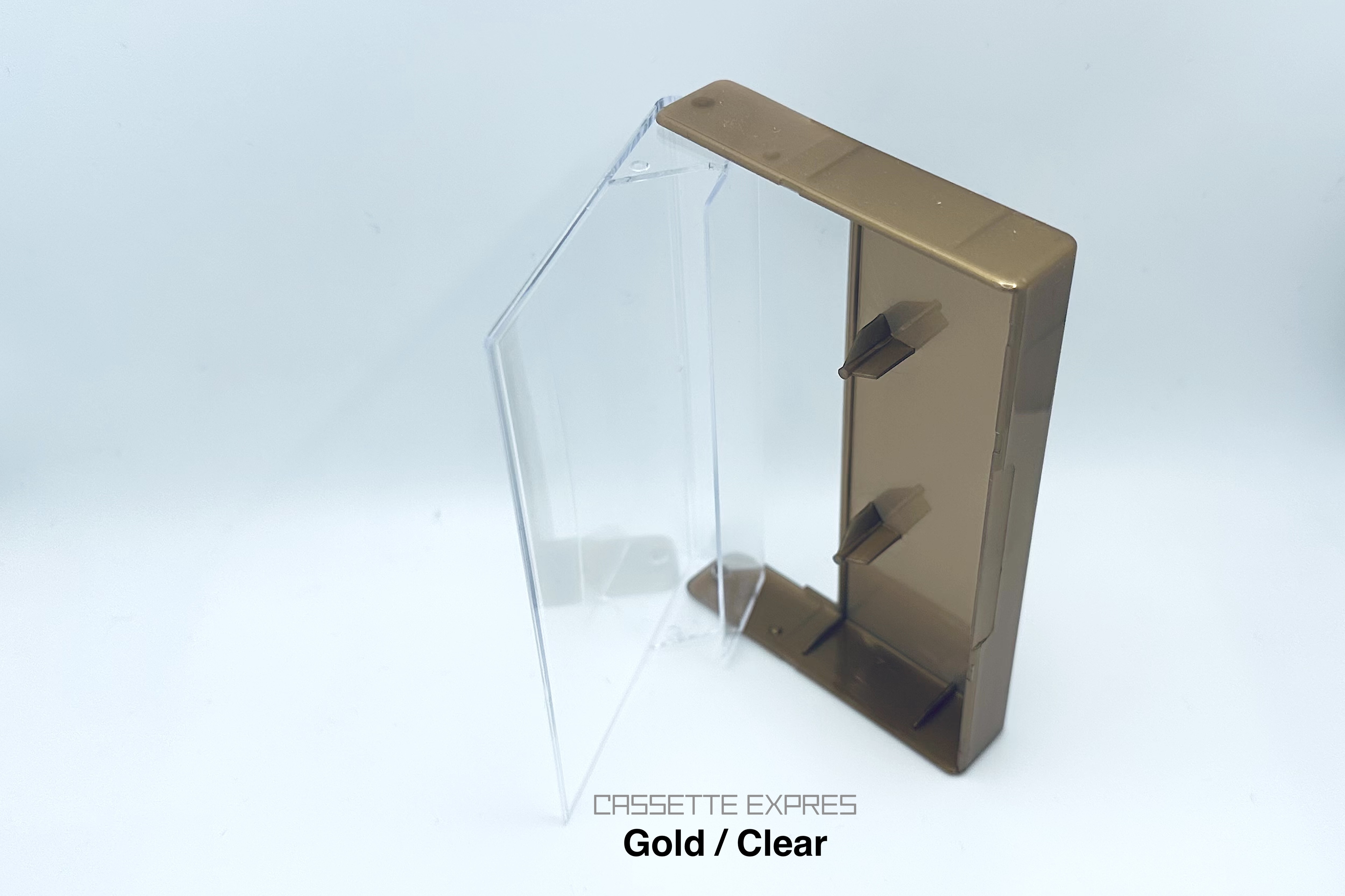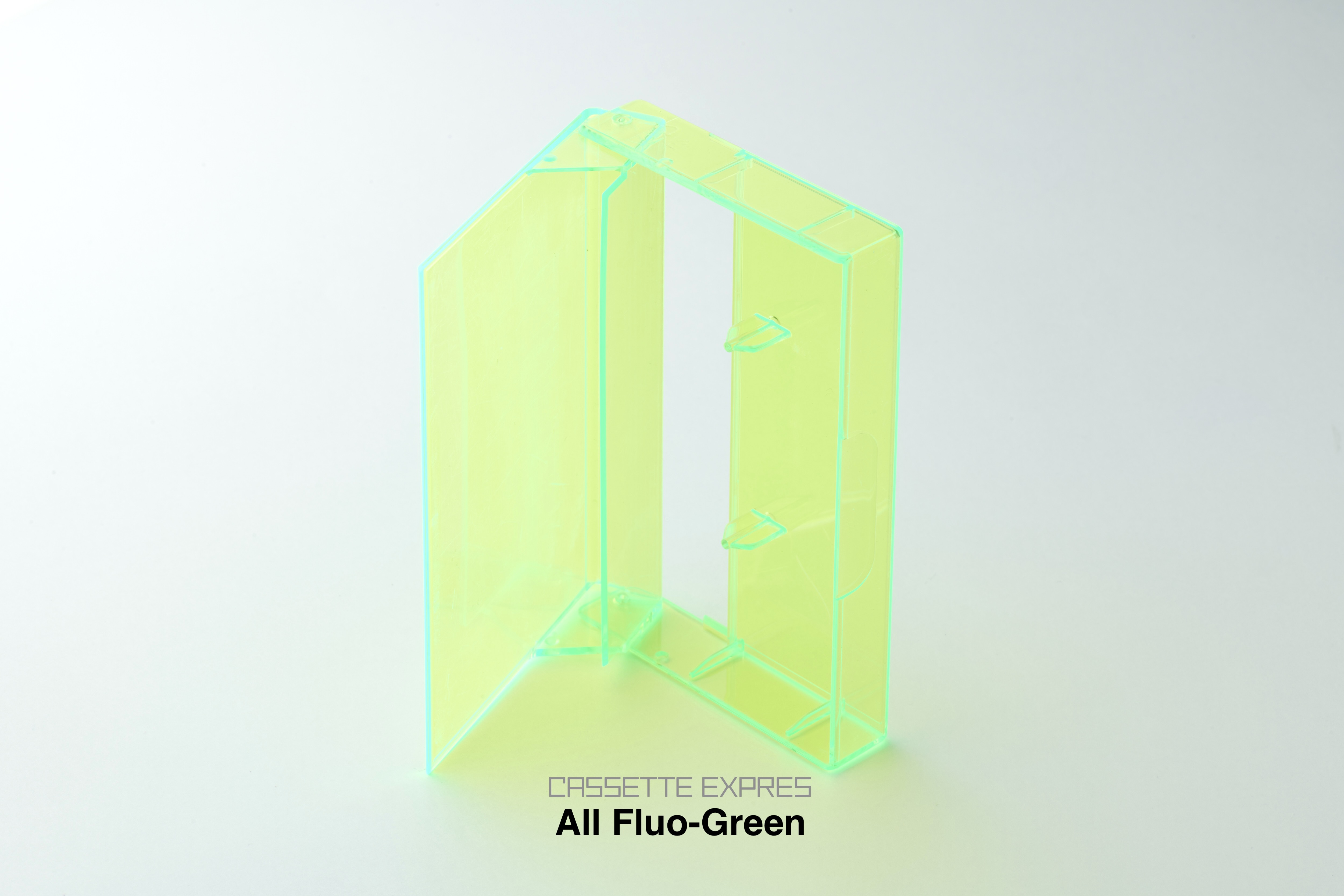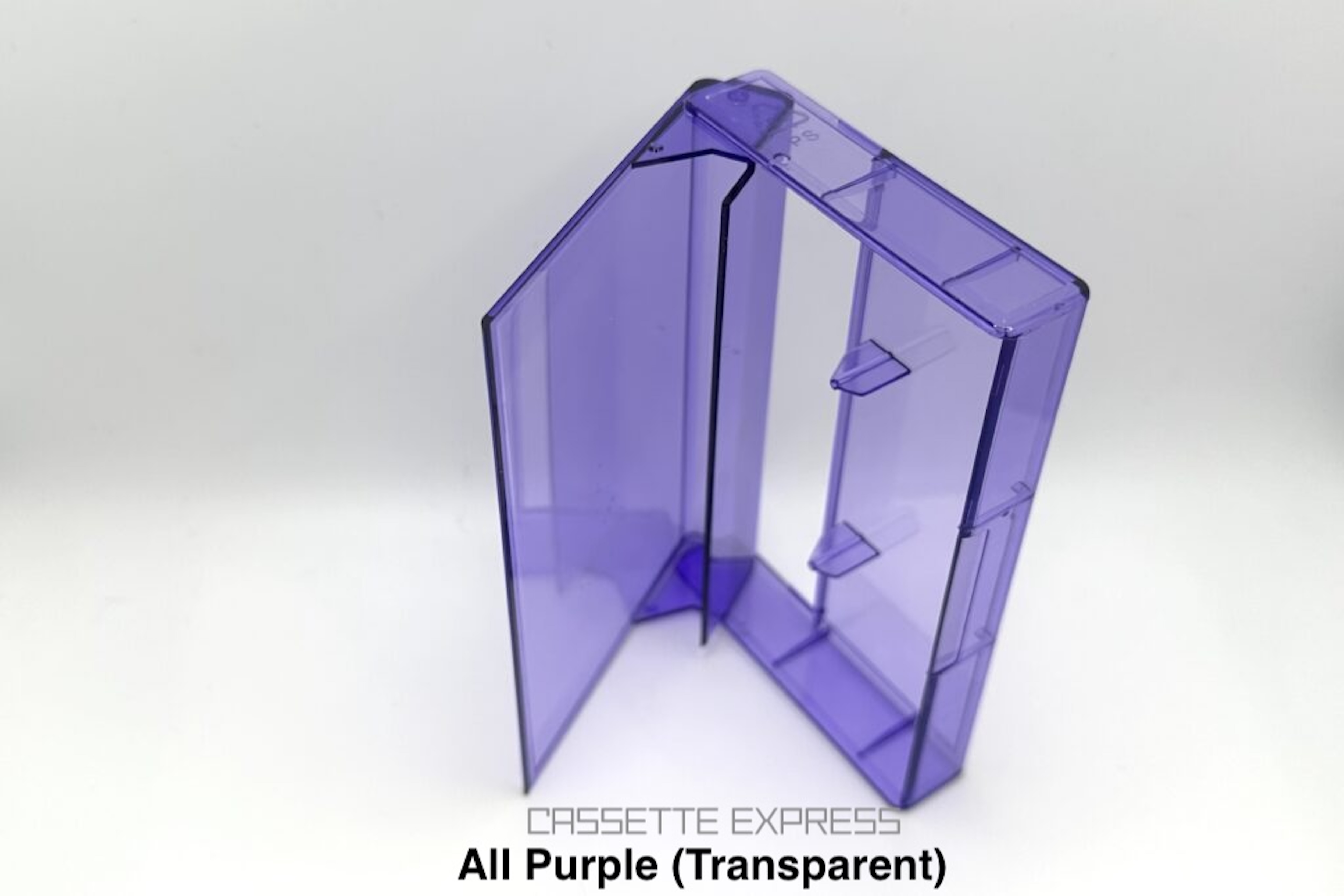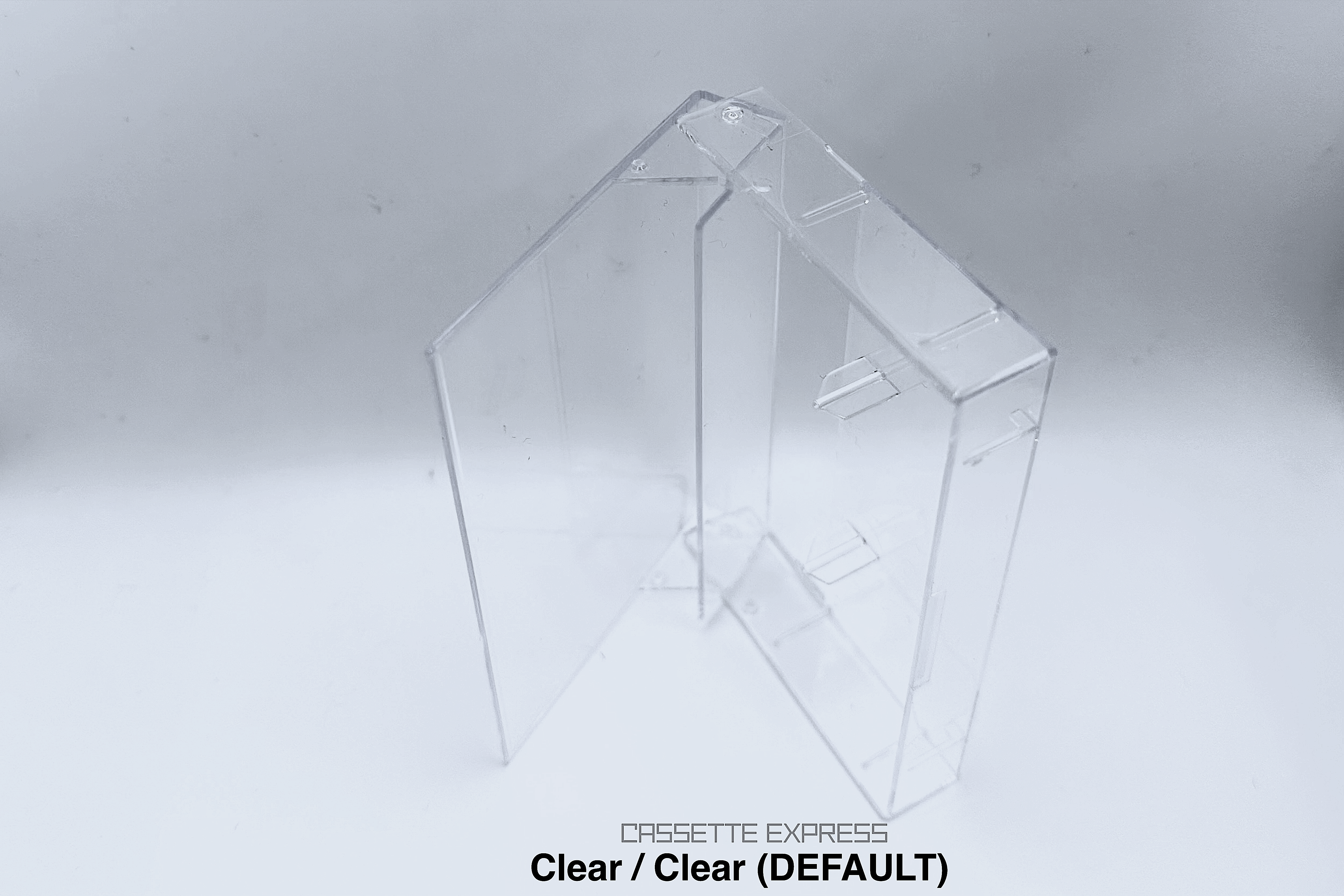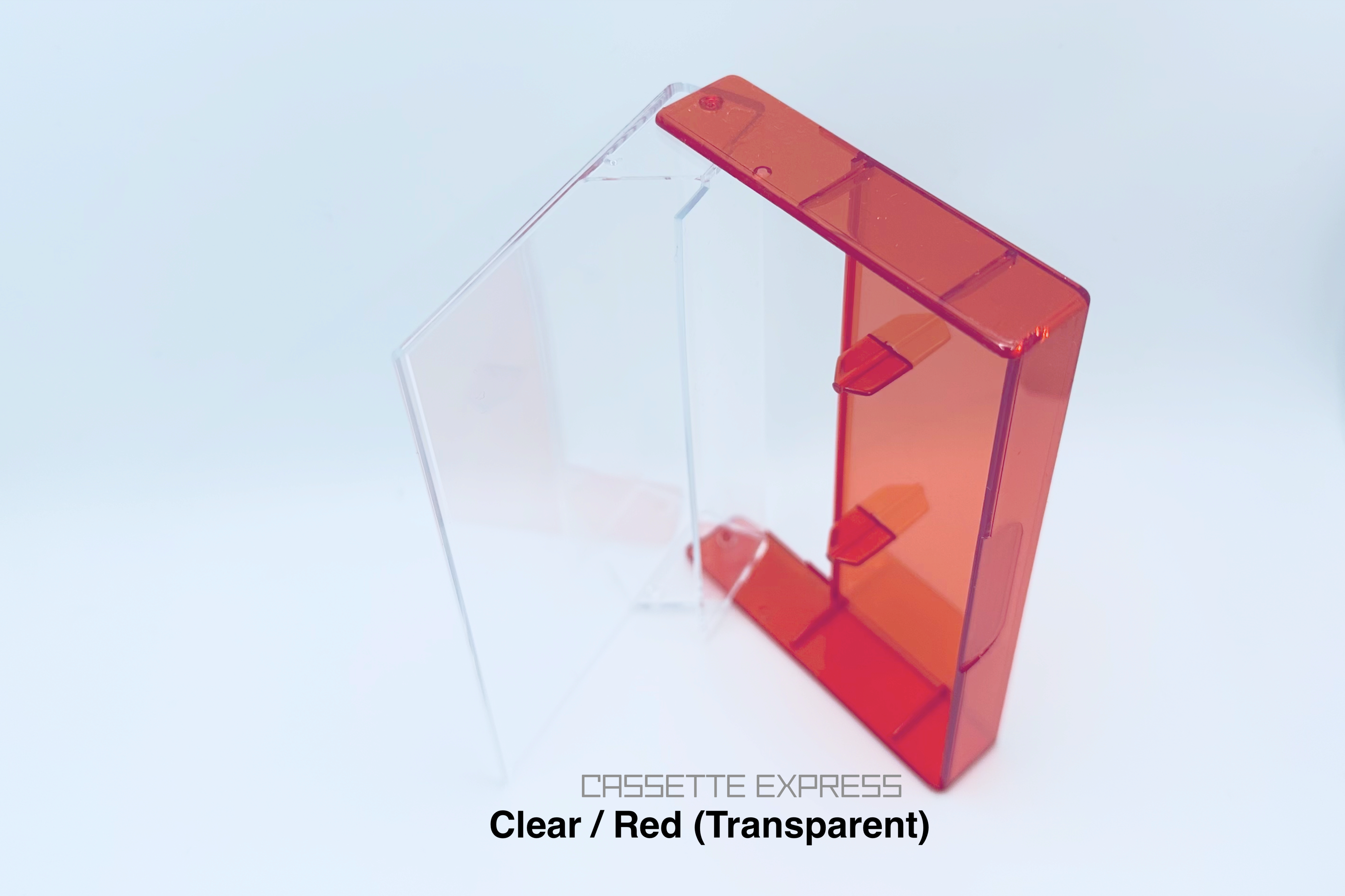フロントはクリアでバックが不透明色なソリッド系色や透け感のあるクリア系色、ブラックライトで浮き上がる蛍光カラー、カセット以外にも使える内部突起無(No Pin)仕様、2本組・3本組仕様などもございます。個別ケースは画像クリックで拡大イメージをご覧いただけます。