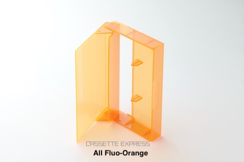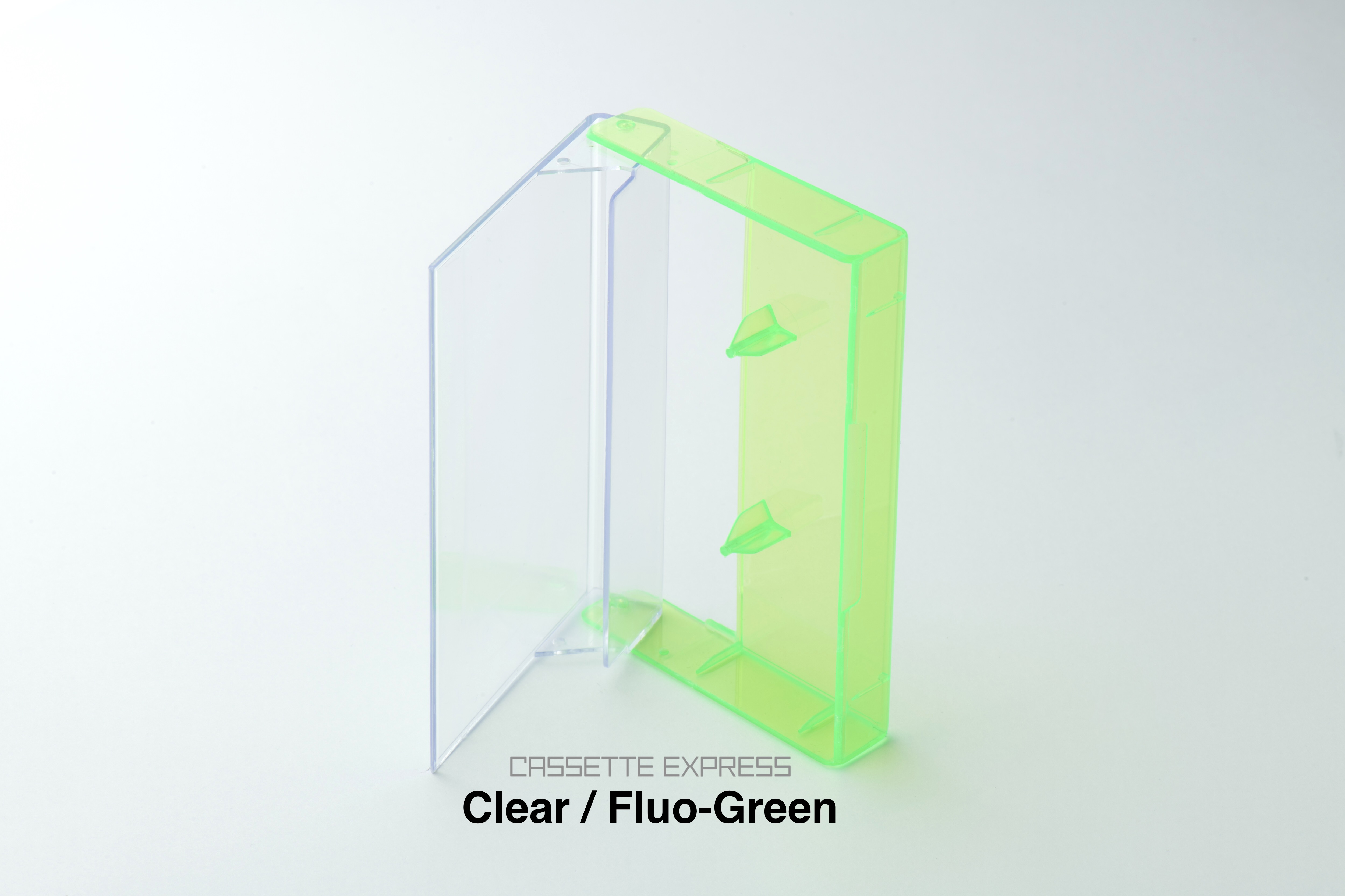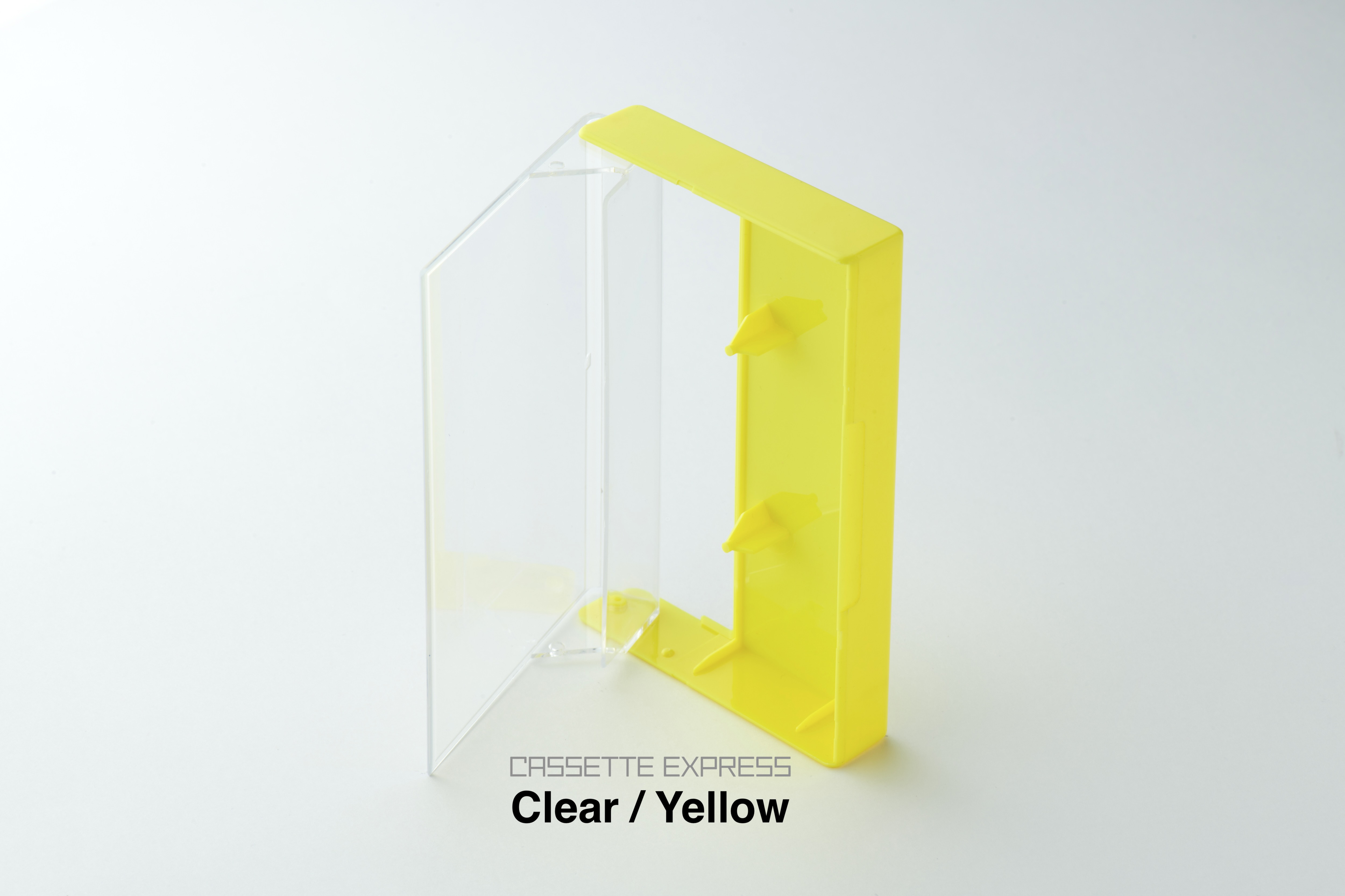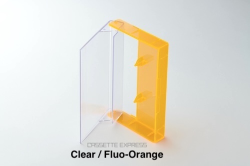 フロントはクリアでバックが不透明色なソリッド系色や透け感のあるクリア系色、ブラックライトで浮き上がる蛍光カラー、カセット以外にも使える内部突起無(No Pin)仕様、2本組・3本組仕様などもございます。