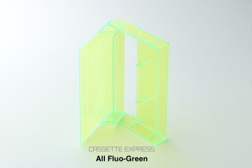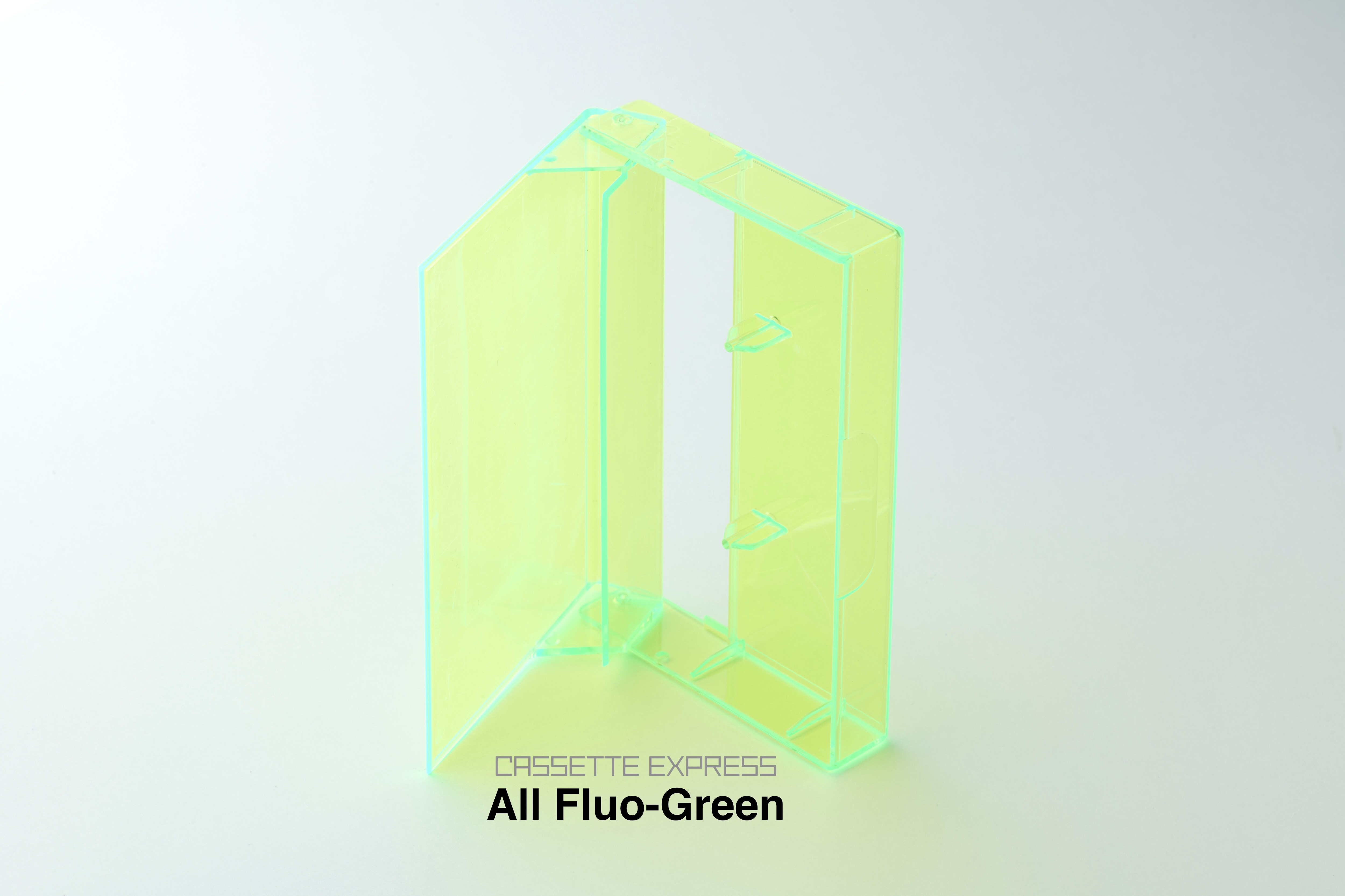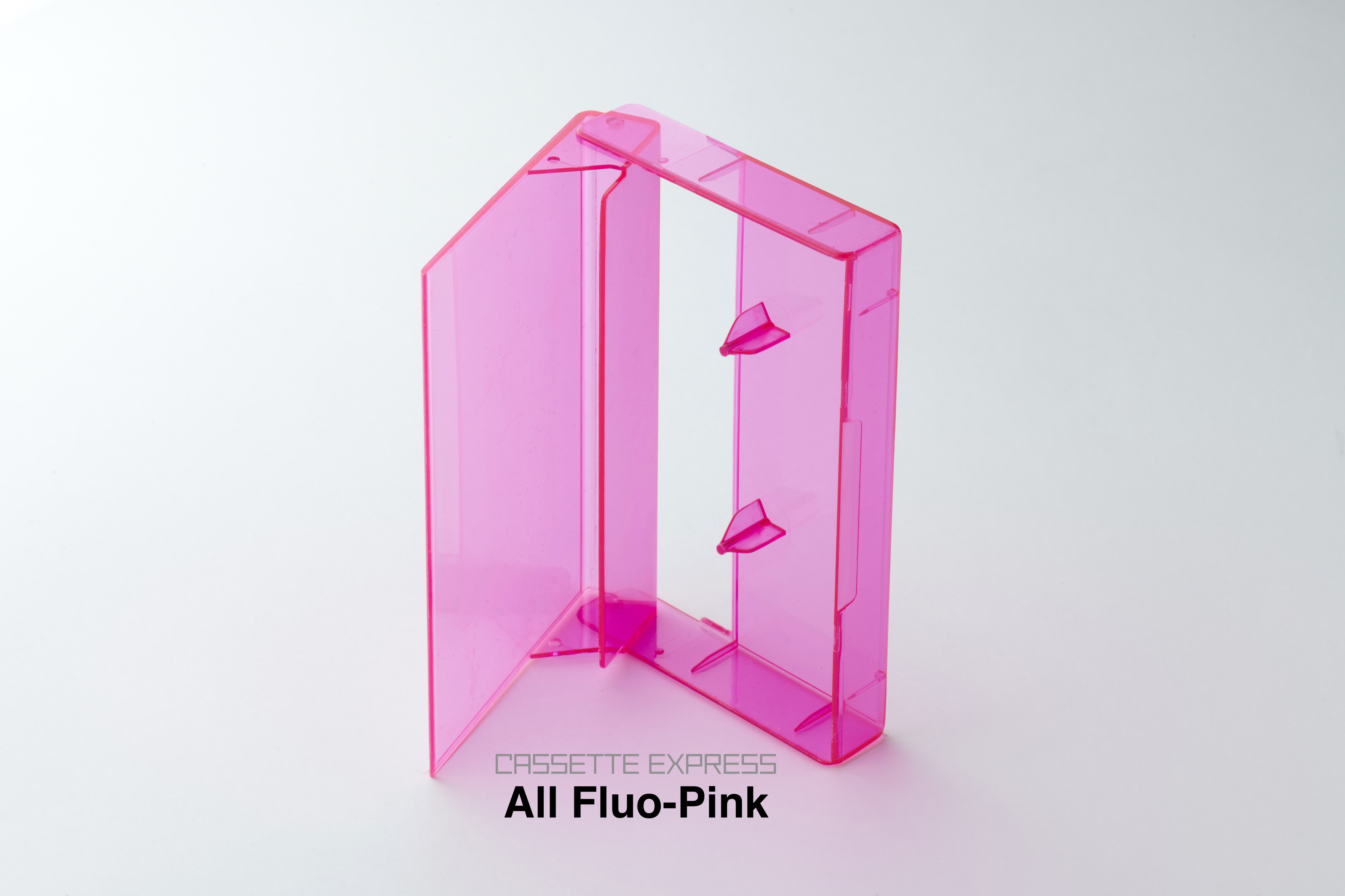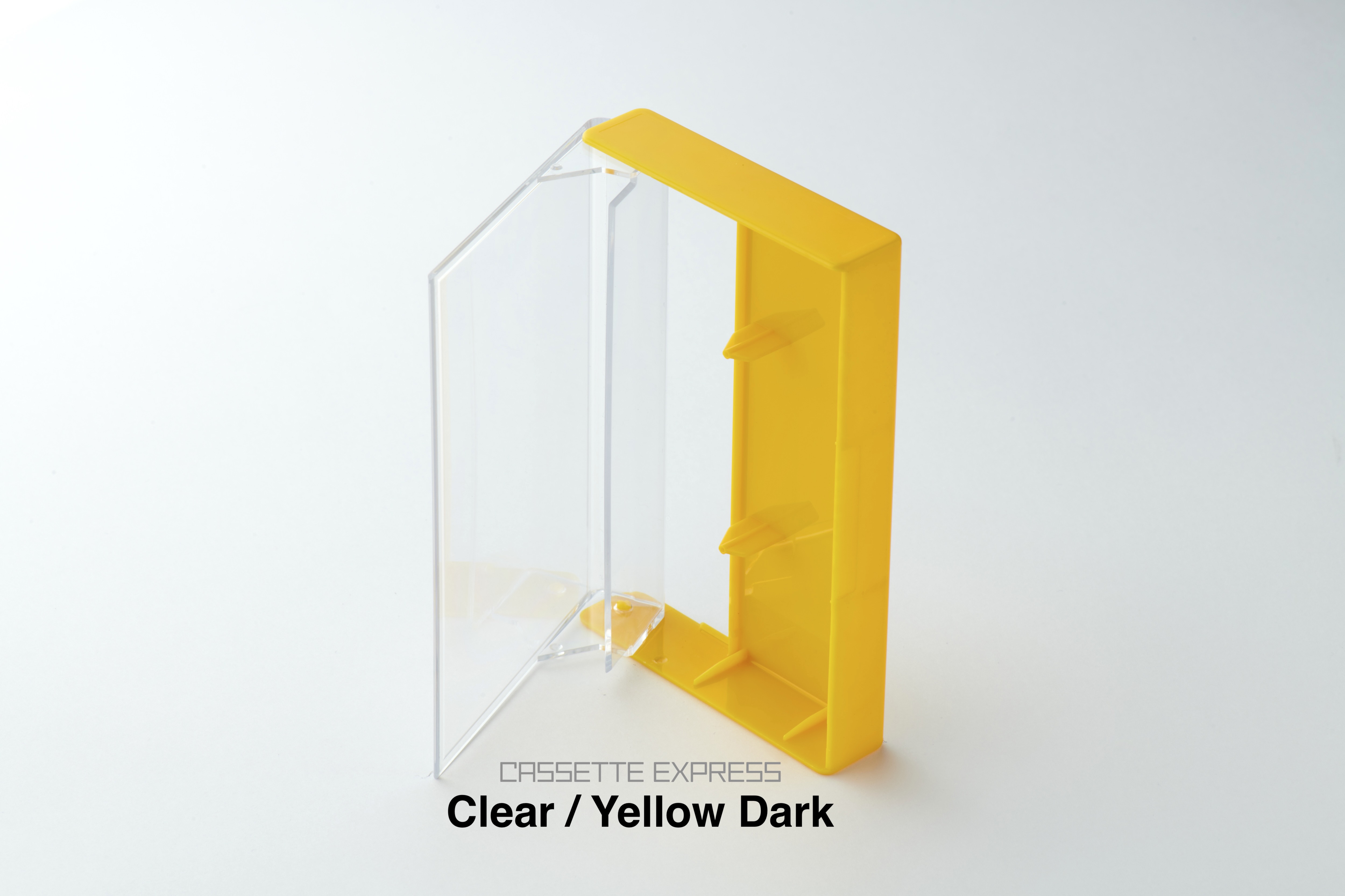 フロントはクリアでバックが不透明色なソリッド系色や透け感のあるクリア系色、ブラックライトで浮き上がる蛍光カラー、カセット以外にも使える内部突起無(No Pin)仕様、2本組・3本組仕様などもございます。