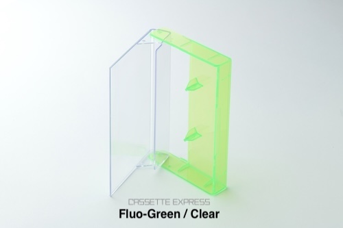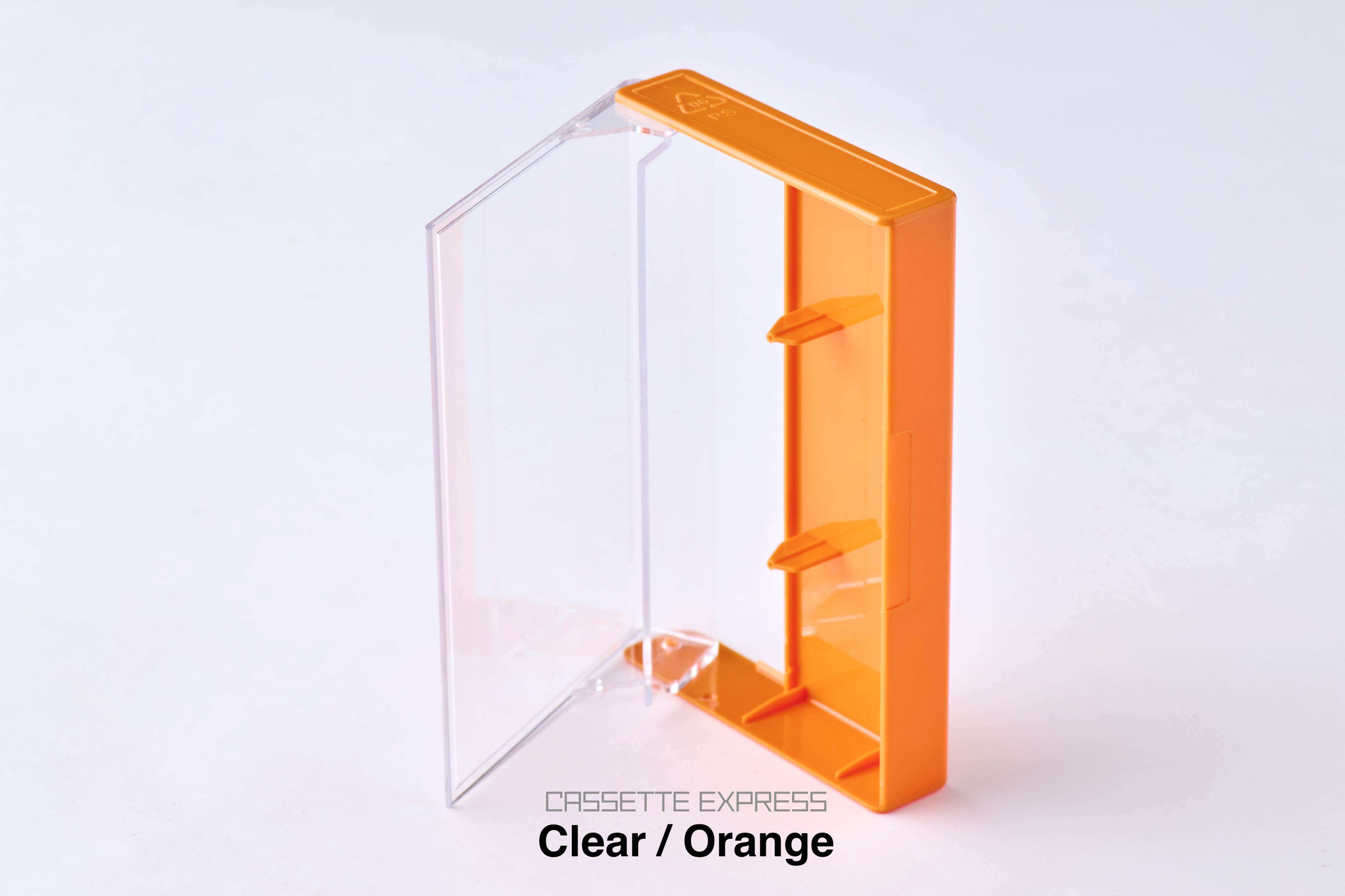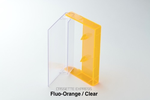 カセット用プラケースは標準のフロント/バック面ともにクリア/クリアに加えて、オプション価格にて様々なカラーのプラケースをご用意しております。